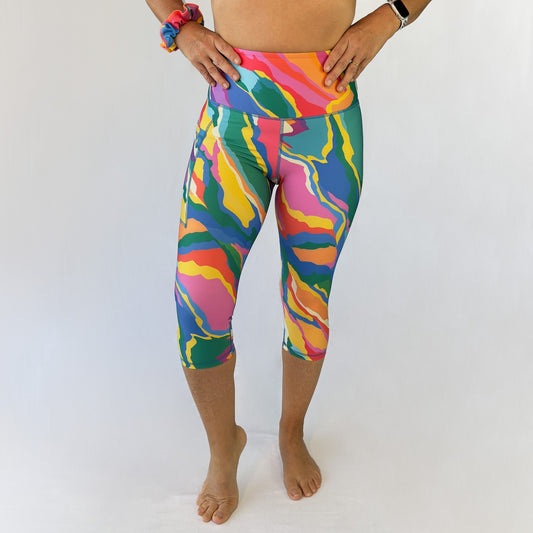 High Waisted Leggings With Pocket in Rainbow - 3/4 length